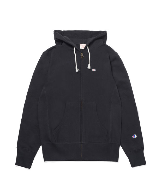 Champion Hooded Full-Zip Sweatshirt Chest Logo Black