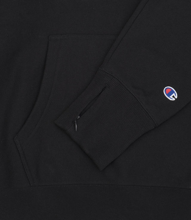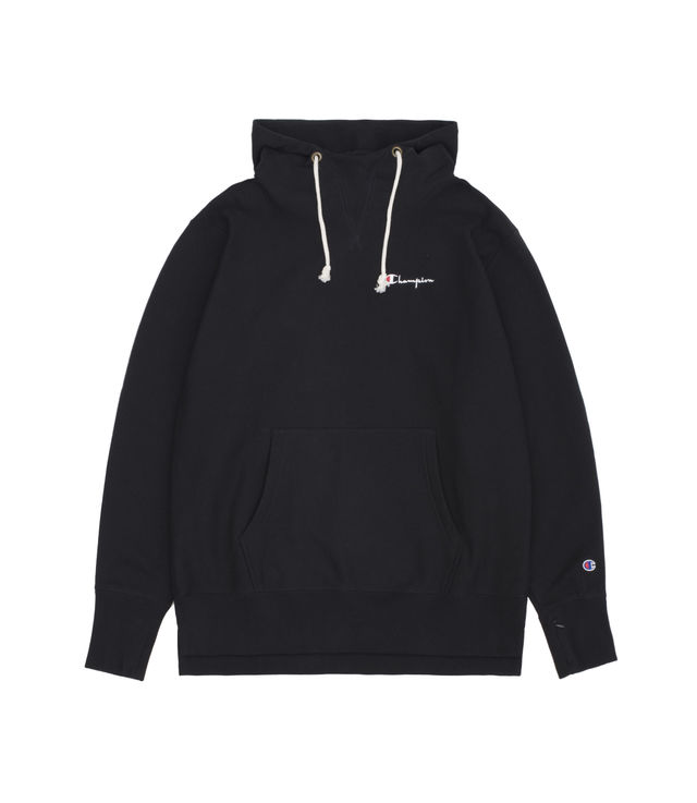 Champion Mini Script Logo Oversized Hooded Sweatshirt Black