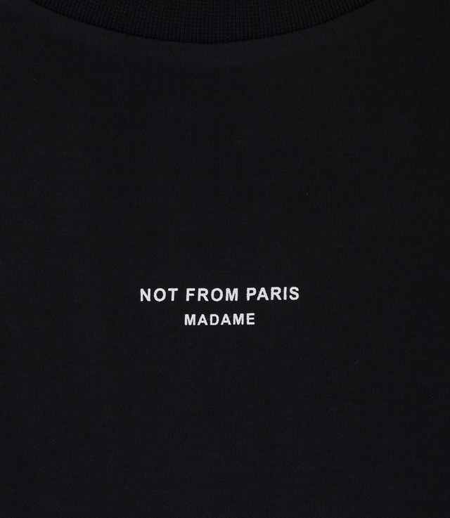 - The printed slogan “Not from Paris Madame” on the chest