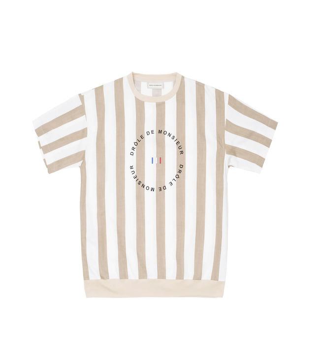 Drôle de Monsieur Stripy Woven T-Shirt Beige