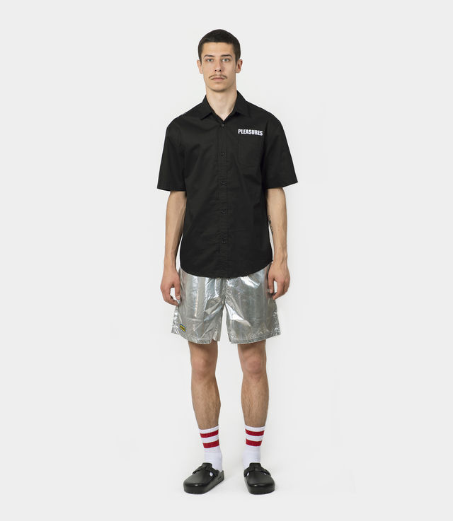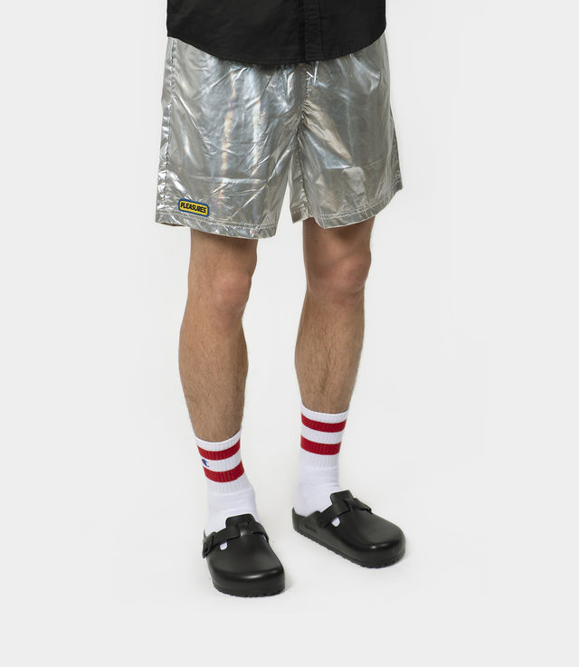 PLEASURES Liquid Metallic Shorts Silver