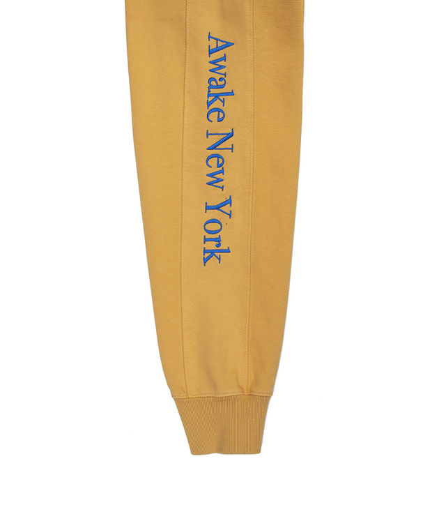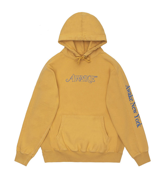 Awake NY Classic Outline Logo Paneled Embroidered Hoodie Mustard