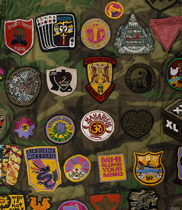 - Allover patches from several U.S. Navy Riverine units of the Vietnam War era and many more from Hardy Blechman’s travels, experiences and from collaborators including Hyperdub, Myoshka, Kay One, Teach, Todd James, OJAS, Gasr, Andy Warhol and XL Recordings, the label of artist Everything Is Recorded, who provided the soundtrack Music for Maharishi, as well as rare 60s anti-war patches