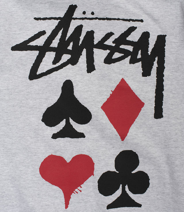 - Graphic print with playing card suits at the chest and back