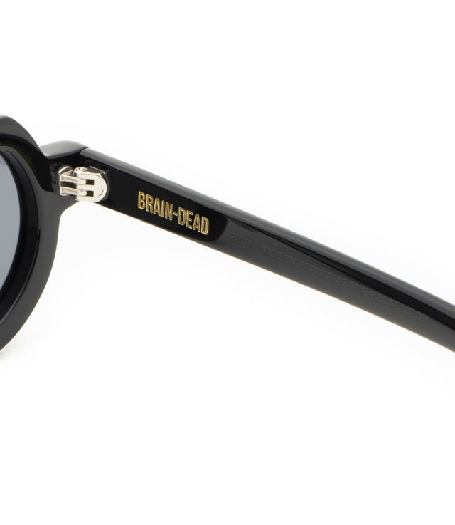 - Brain Dead logo and slogan “Post Modern Primitive Eye Protection” at the right temple