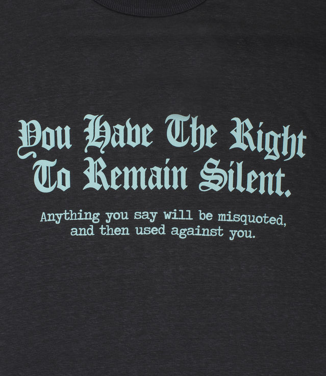 - The printed slogan “You have the right to remain silent. Anything you say will be misquoted, and then used against you.”