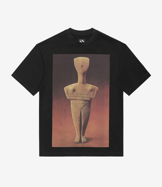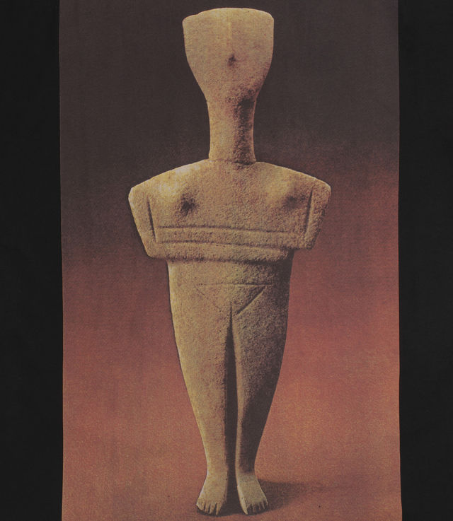 - Printed graphic of Cycladic figurine on front. Figurines as such were used as a cult object focused on ritual worshipping and funerary practice