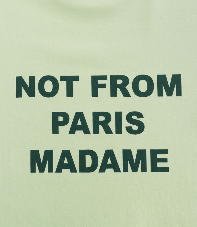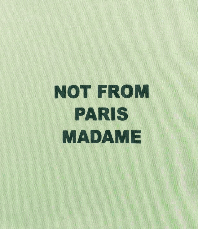- Printed slogan “NOT FROM PARIS MADAME” on the chest and back