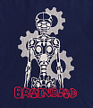 - Skeletal gear graphic on the front