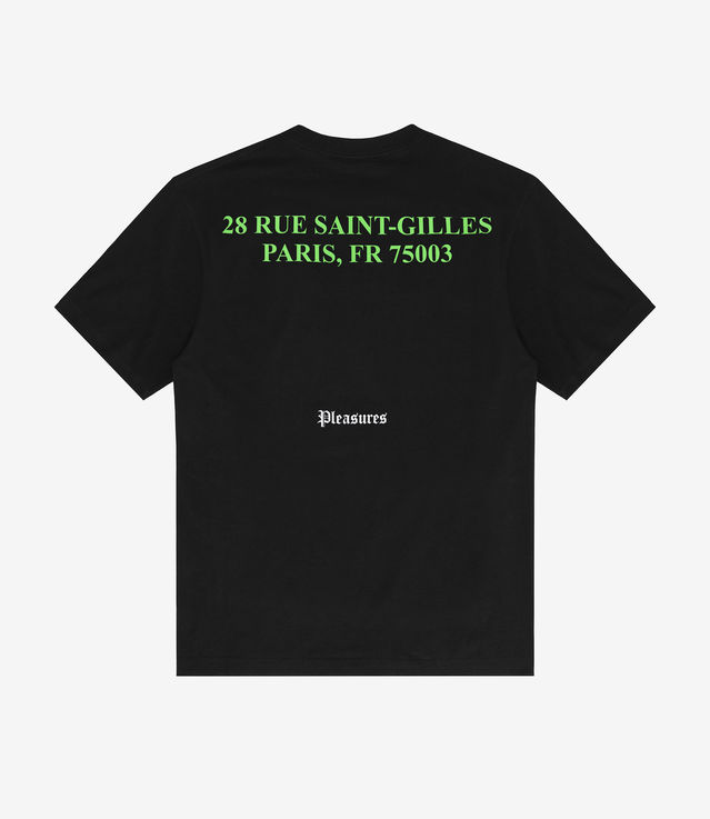 - Pleasures logo on back