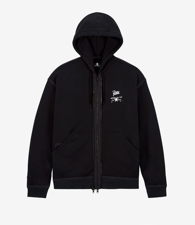 - Embroidered star chevron on the right sleeve and Converse logo on the hood