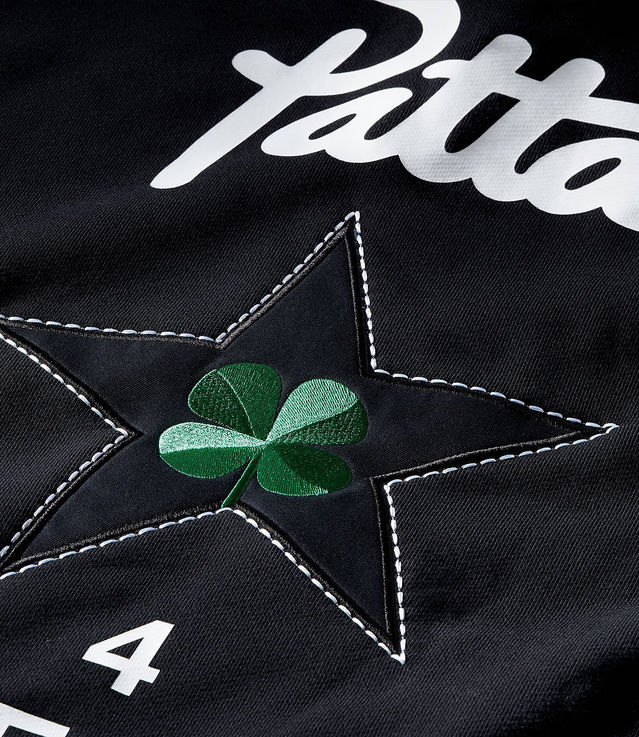 - Features screen printed Patta logo, appliquéd star patch and embroidered four-leaf clover graphic on back