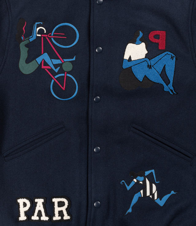 by Parra Run Sit & Bike Varsity Jacket Navy Blue