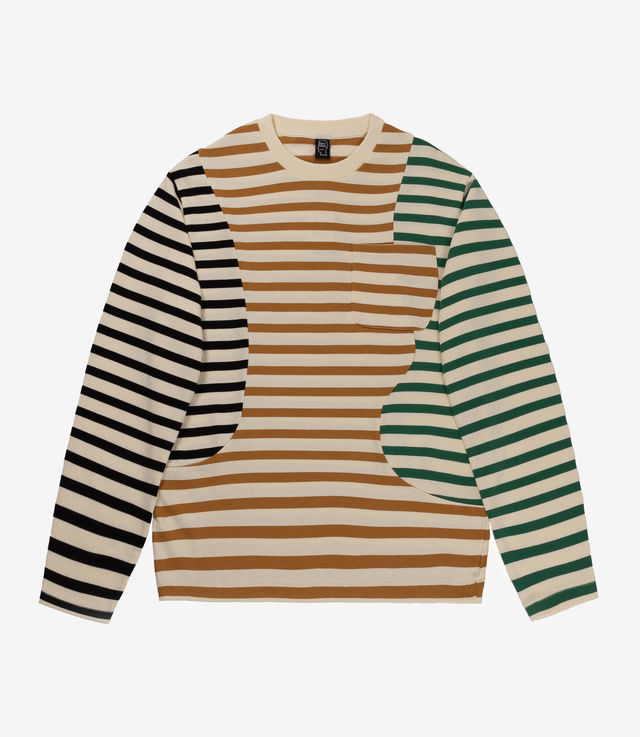 Brain Dead Organic Paneled Stripe LS Shirt Cream Multi