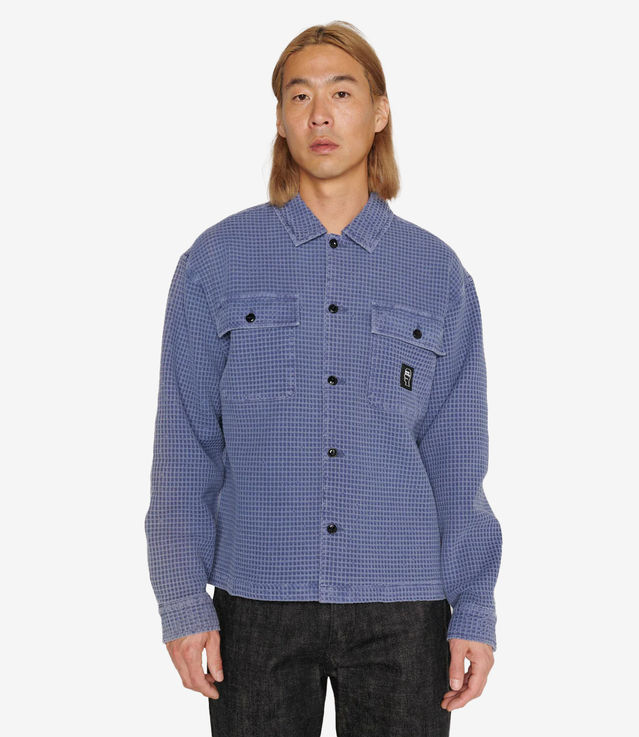 Brain Dead Waffle Button Front Shirt Blueberry