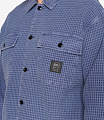 Brain Dead waffle button up shirt with adjustable button sleeves. Double chest pockets with Brain Dead PVC logohead patch on the left.