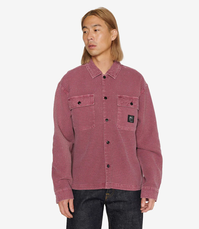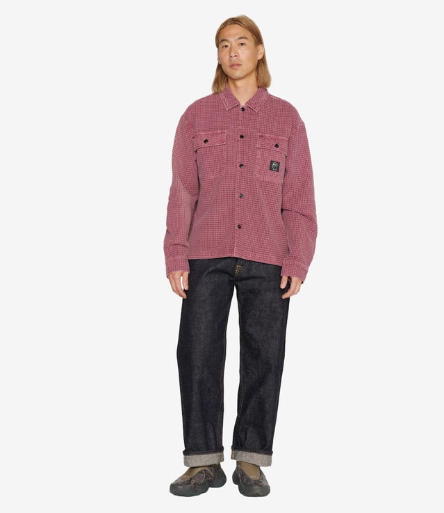 Brain Dead Waffle Button Front Shirt Raspbery