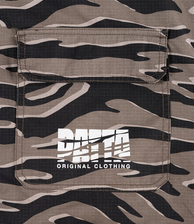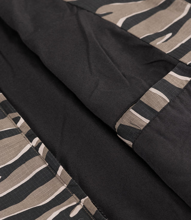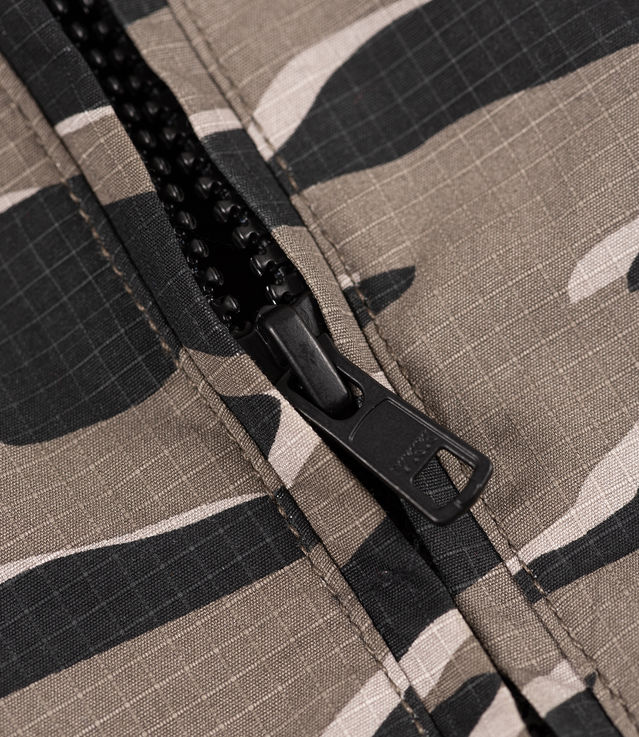 The Patta Tiger Stripe Camo Ripstop Jacket is constructed in 100% Recycled Polyamde Ripstop with a digital printed Tiger Stripe allover print. The jacket features 100% Cotton lining, a hood, full YKK zipper and several cargo pockets to store all your belongings. The hem is equipped with an adjustable elastic cord and the cuffs are adjustable with a velcro strap. Patta Original Clothing branding sits on the left hand side of the chest.