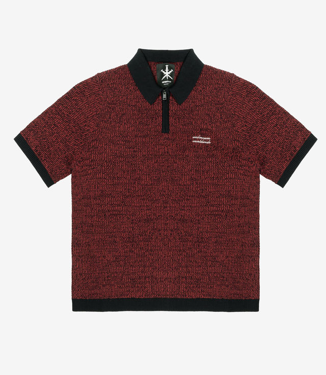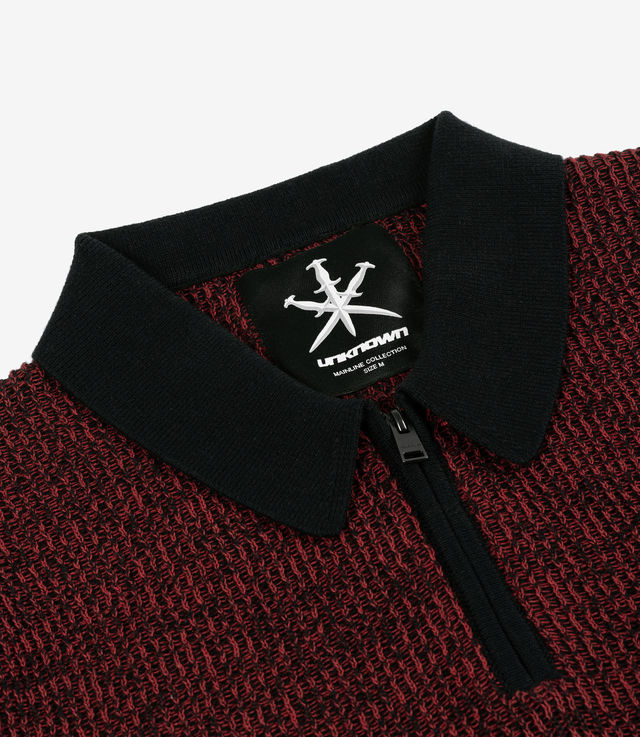 Unknown London Half Zip Knit Polo Red/Black