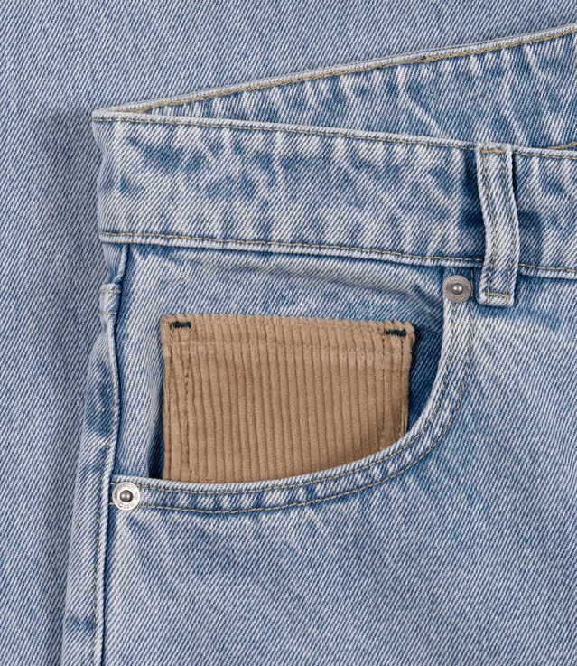 - Corduroy detail in the front right pocket