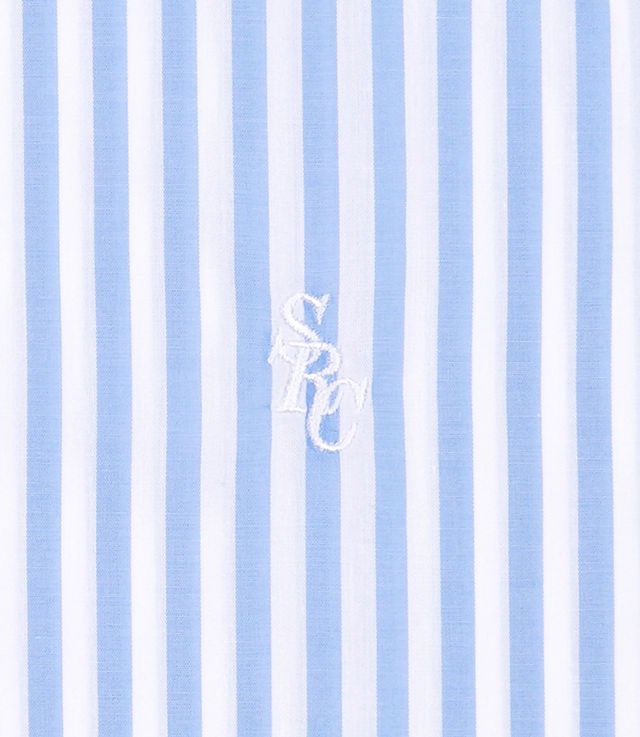 Sporty & Rich SRC Embroidered Button Down Shirt White/Sky Blue Large Stripe/White