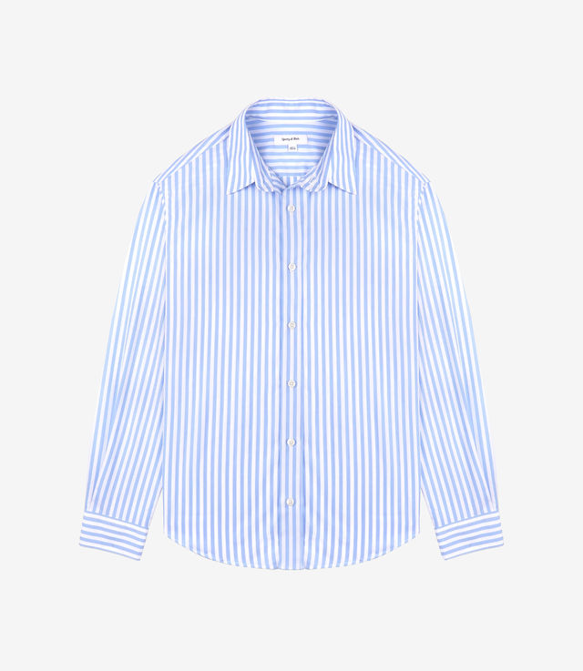 Made from 100% cotton poplin. Shirts are made in Portugal at one of the finest and oldest European shirt maker. Unisex fit with a classic collar, curved hem and buttoned cuffs.