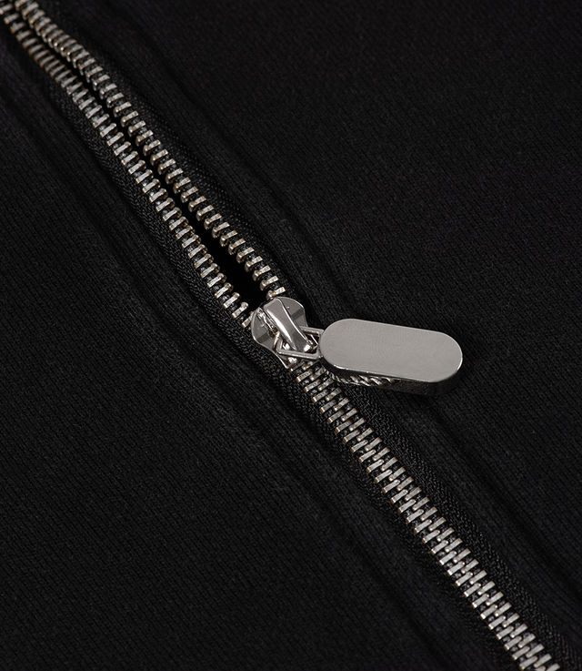 - Chrome silver full zipper & logo