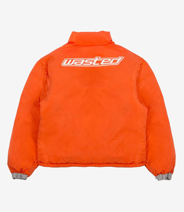 Wasted Paris Pulse puffer is made of nylon fabric. It features the Pulse logo printed on the front and back with a high density technique. The down jacket is reversible in an orange version. Elastics with stoppers are located at the bottom of the body to adjust the piece. It has two zipped pockets on the sides.