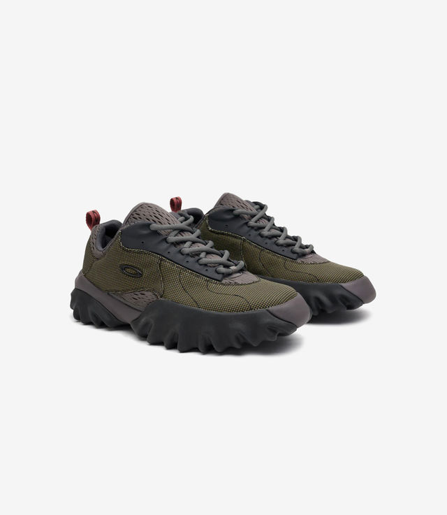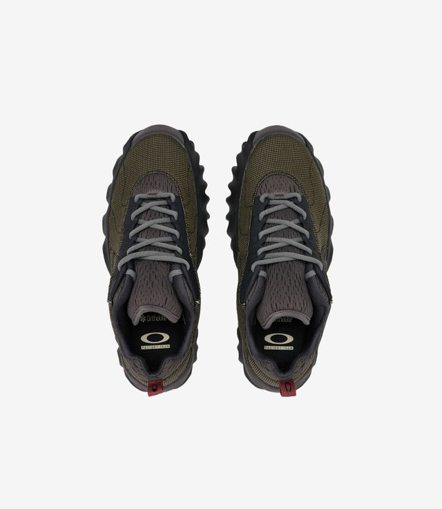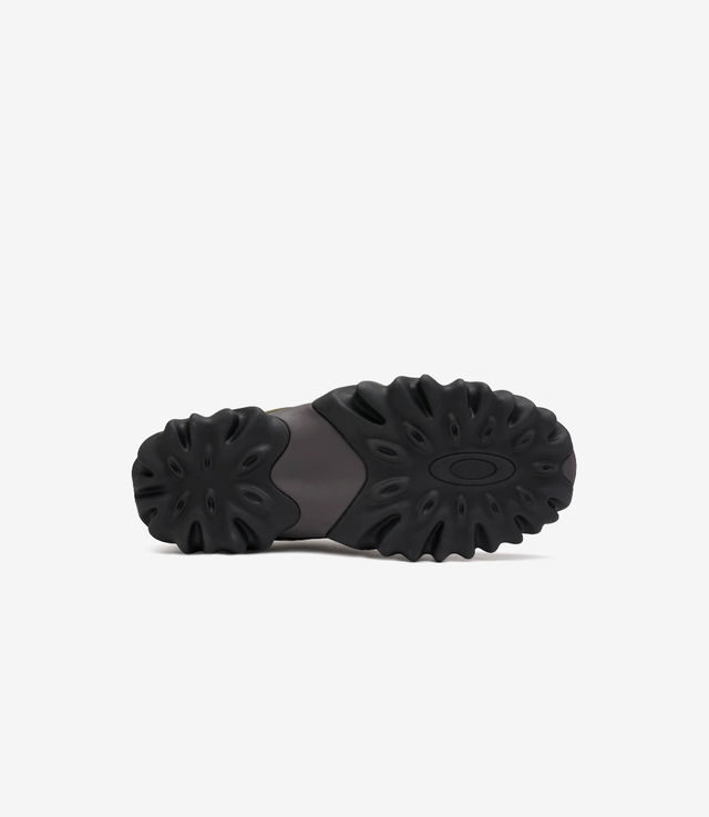 As a true tribute to its heritage, the Oakley Factory Team Chop Saw revives and reimagines a timeless design. Its powerful grip and robust support radiate character, drawn from the distinct serrated eyelet plaque and durable sole, blending aesthetics and functionality seamlessly. The Oakley Factory Team embarks on a journey of exploration, experimenting with diverse materials and color combinations, pushing the boundaries of what the Chop Saw can achieve. The Oakley Factory Team Jacquard Chop Saw presents an intriguing mix of black and yellow Moron fabric on the front and back panels. Paired with a dark gull gray mesh tongue and lining, it stands out. The blue graphite eyelets and a phantom-shaded rubber outsole add a unique touch to a shoe designed to accompany you on any journey.