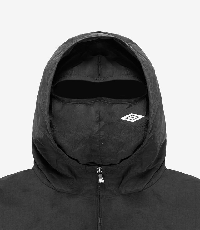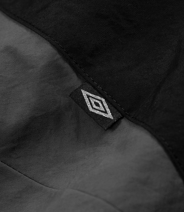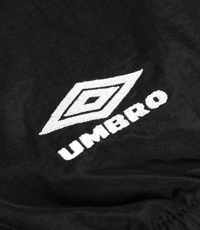 Umbro 1993 Masked Track Jacket Black. Just like in football, tough times exist and must be overcome with unity and spirit. "Hard Times" is the motto of the Umbro collection, designed by Slam Jam for Umbro, celebrating resilience as a way of life. Once again, the collection offers an elevated approach to the heritage of the British brand, with shapes, materials, and contrasts that define the look of an ultra-contemporary streetwear wardrobe.