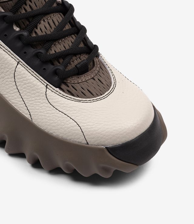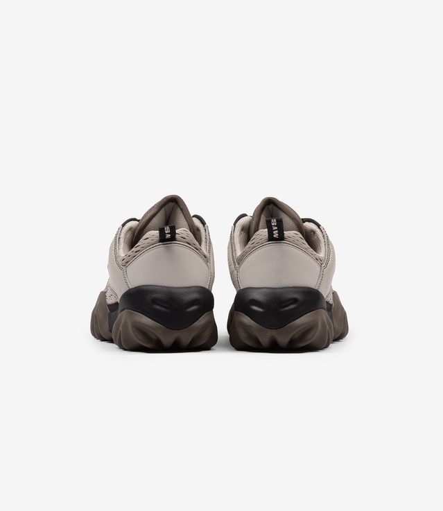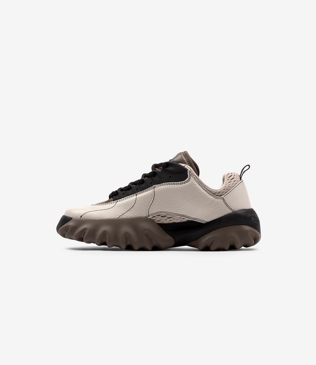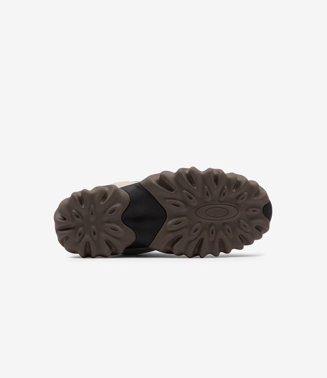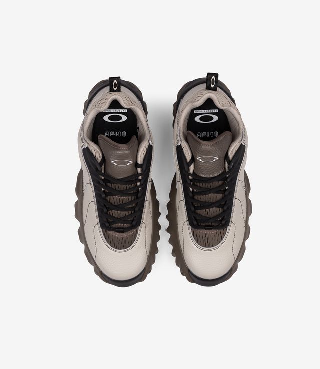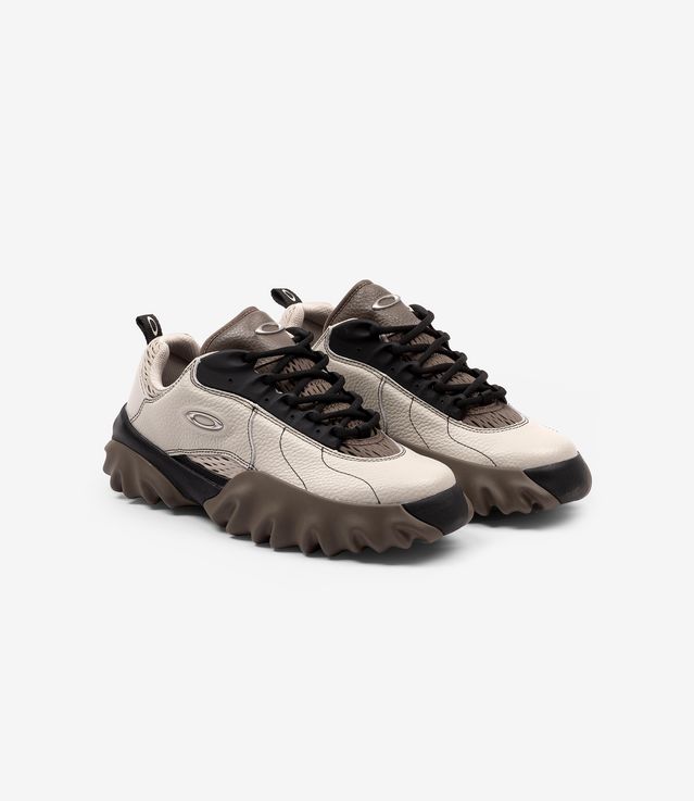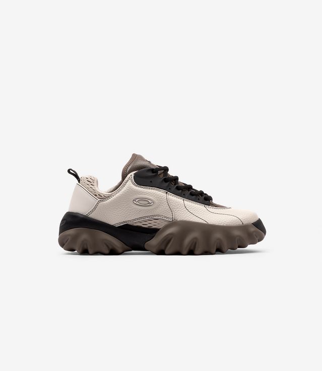 Understanding that the Oakley Factory Team Chop Saw is one that cuts through anything, especially the clutter, the Factory Team went on and chose every detail to sharpen its composition. With a silhouette that will move you forward, the ivory shoe upper is decorated with the off-white shade eyelet plaque and the textured mesh black collar. With the mesh black lining continuing inside the shoe and along the midsole, it is also complemented by a black pull cord and a black metal logo and a touch of contrast. Holding all together from the black jagged rubber signature Chop Saw sole, you may need butcher’s glove to bring those home.