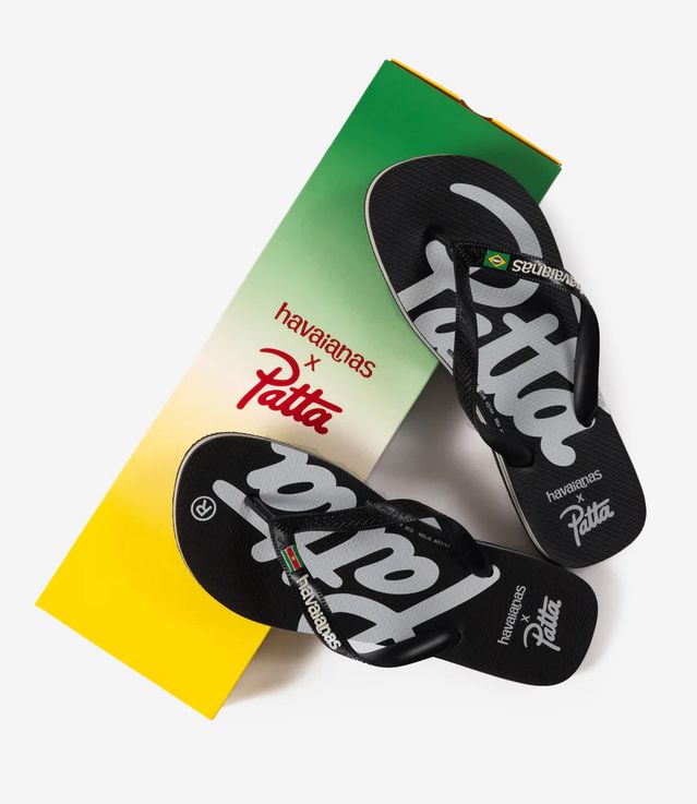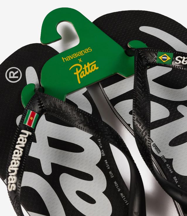Patta x Havaianas presents a limited-edition flip-flop. The flip-flop is built on Havaianas original Brasil Logo silhouette, unchanged in form, but with a strong Patta presence. The footbed carries oversized Patta branding, mirrored across both feet. The straps feature subtle co-branding, yet the sole stays untouched and is made from 100% Brazilian rubber, made to move, built to last.