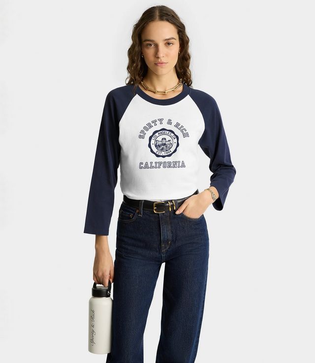 Sporty & Rich California Emblem Soft Baseball Tee White/Dark Navy