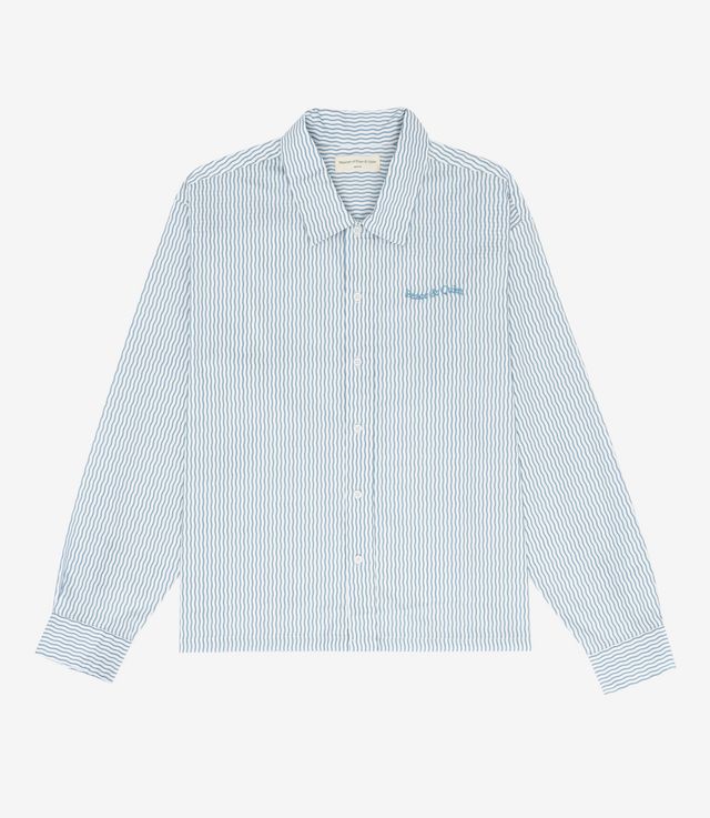 Museum of Peace and Quiet Wordmark Poplin Button Up Shirt Blue