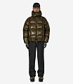 Lightweight and highly insulated, the CUBE puffer jacket in dark green color is crafted from shiny microripstop fabric (<27g/sqm) with a 10D water-repellent ripstop nylon shell. Filled with premium 650 fill power real down (90/10 grey down), it delivers exceptional warmth and protection. Key features include taped down bag topstitching, roomy front pockets, a center-front double-puller reverse zip, an adjustable hood with pullers and a back tab, and an internal thermal neck gaiter. Elasticated hem and cuffs ensure a comfortable, secure fit.