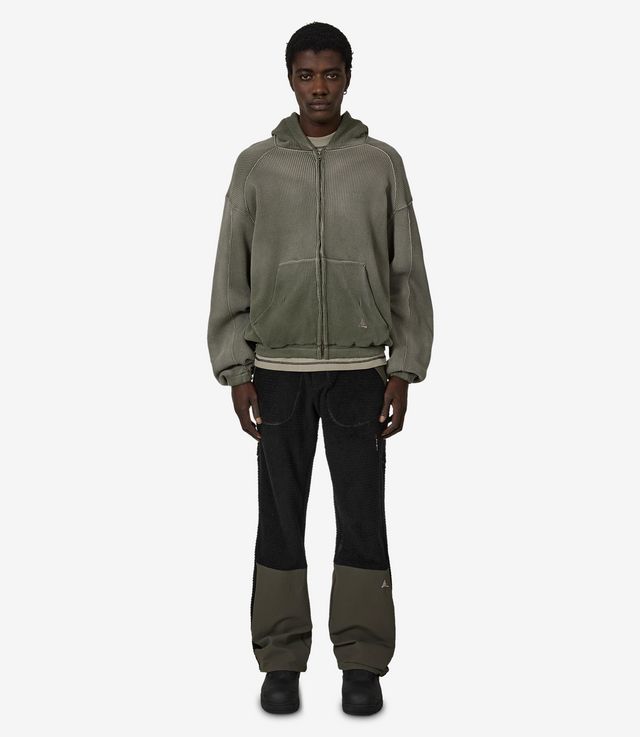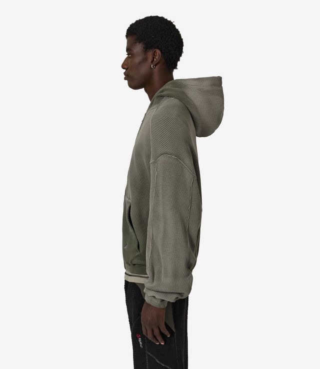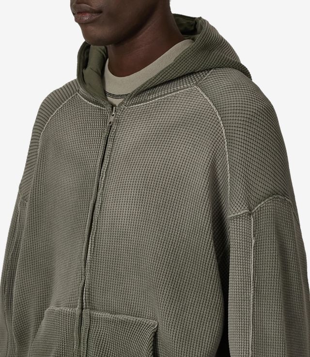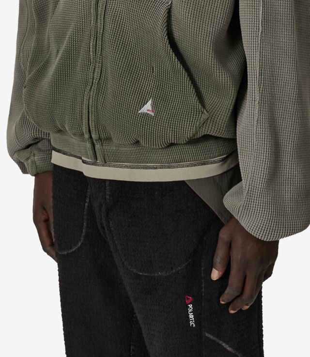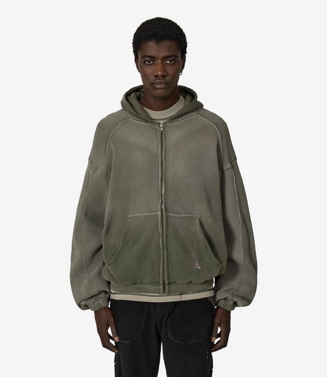 ROA Bee Sun Faded Waffle Zip Up Hoodie Olive