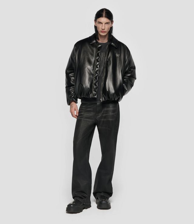 MISBHV Faux Leather Puffer Bomber Jacket Black