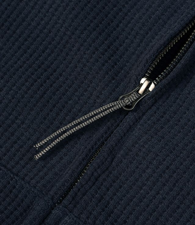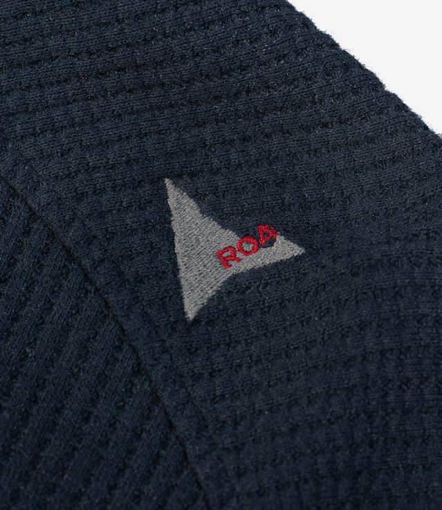 ROA Bee Sun Faded Organic Waffle Zip Up Hoodie Navy