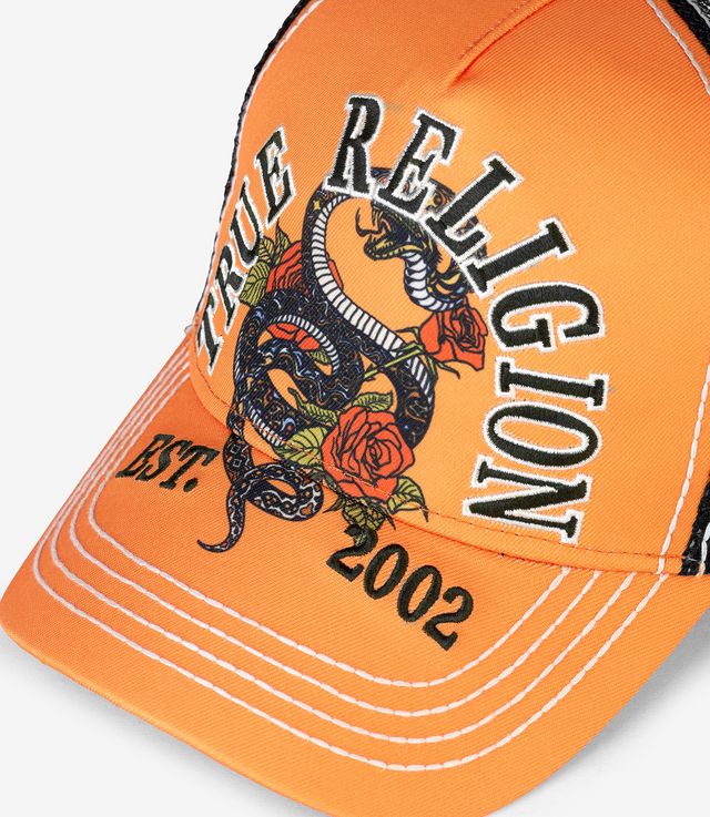 True Religion Snake Trucker Hat Oriole Orange