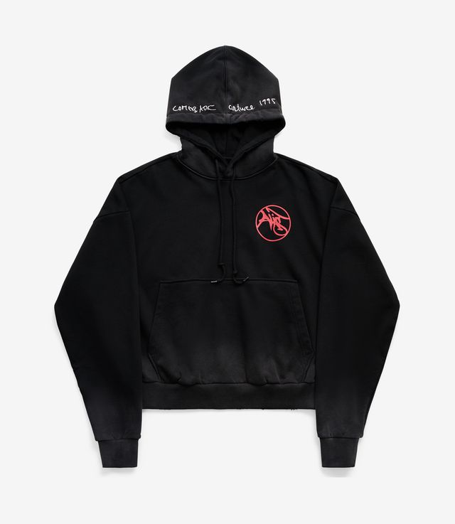 Alis Malto Cropped Print Hoodie Faded Black
