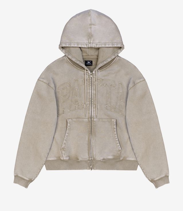 Patta Loopback Logo Zip Hooded Sweater Irish Cream