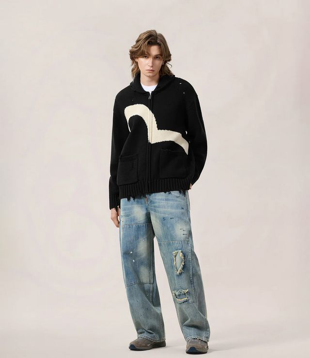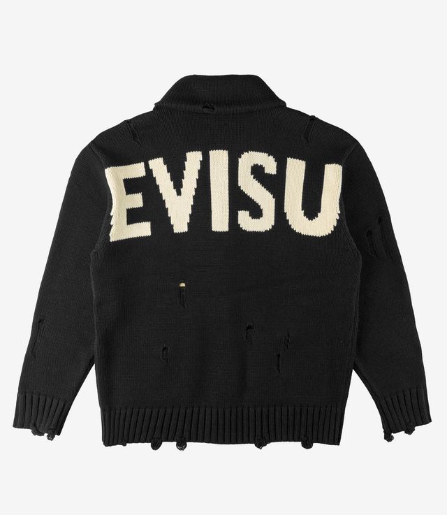 EVISU Cotton Blend Cowichan Cardigan Jacket Black