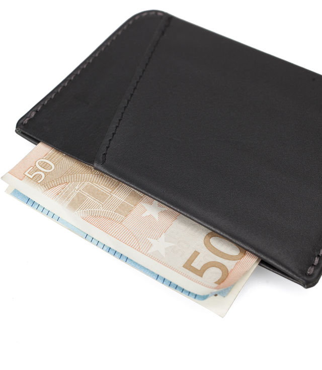 - Central pocket for folded bills and additional cards