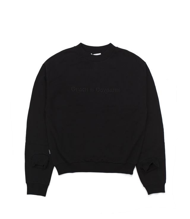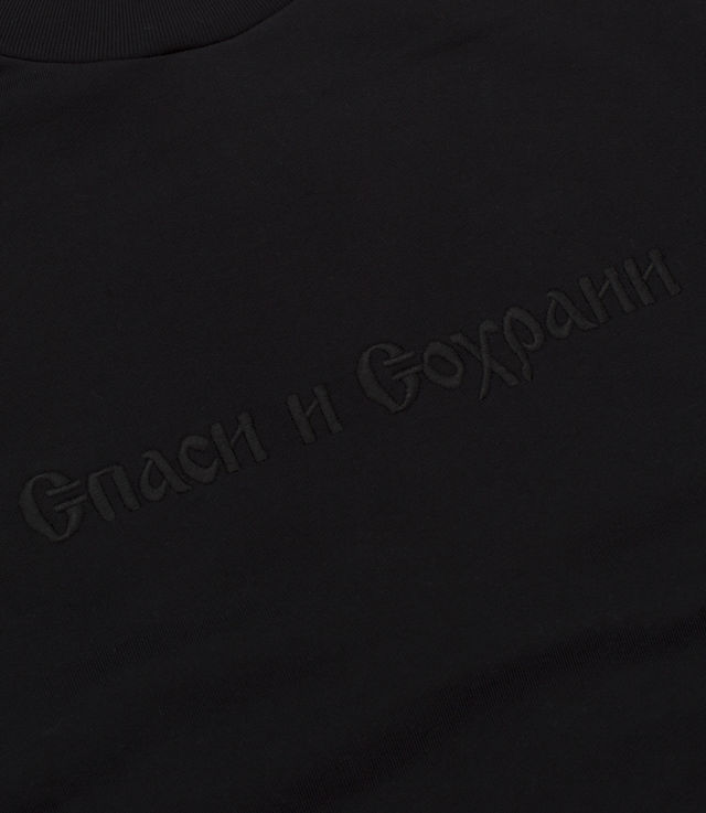 Gosha Rubchinskiy Sweatshirt w/Double Cuff & Embroidery "Save and Survive" Black