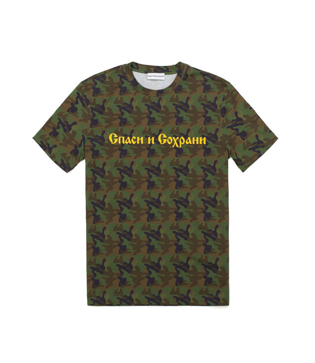 Gosha Rubchinskiy Camo Cotton T-Shirt "Save and Survive"