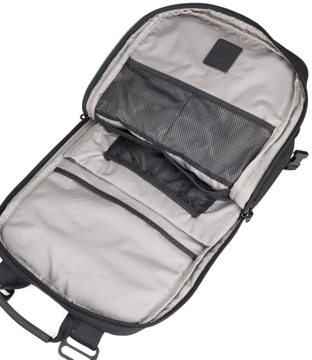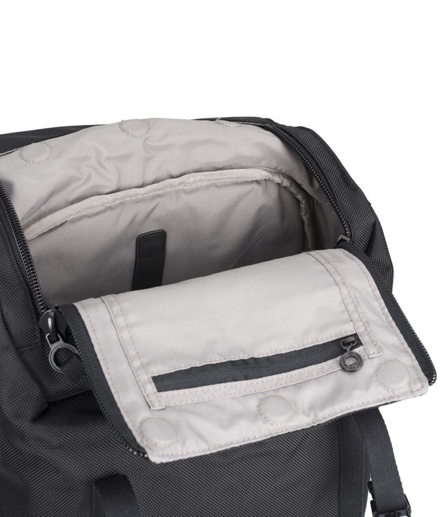 Front module features large main compartment with mesh drop pocket designed for maximum storage, magnetic opening into main body, handy zip travel pocket within covering flap and hidden slip pocket on front panel.