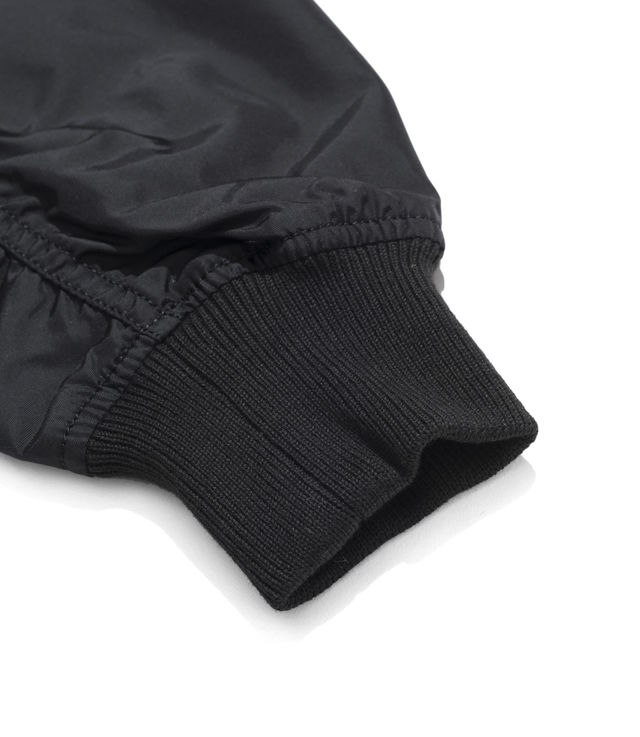 - Elasticated collar, cuffs