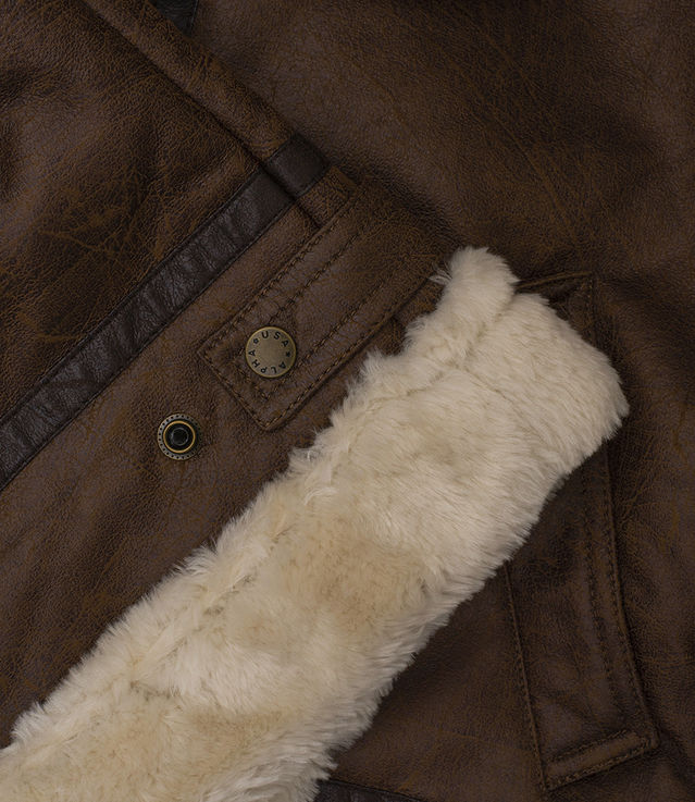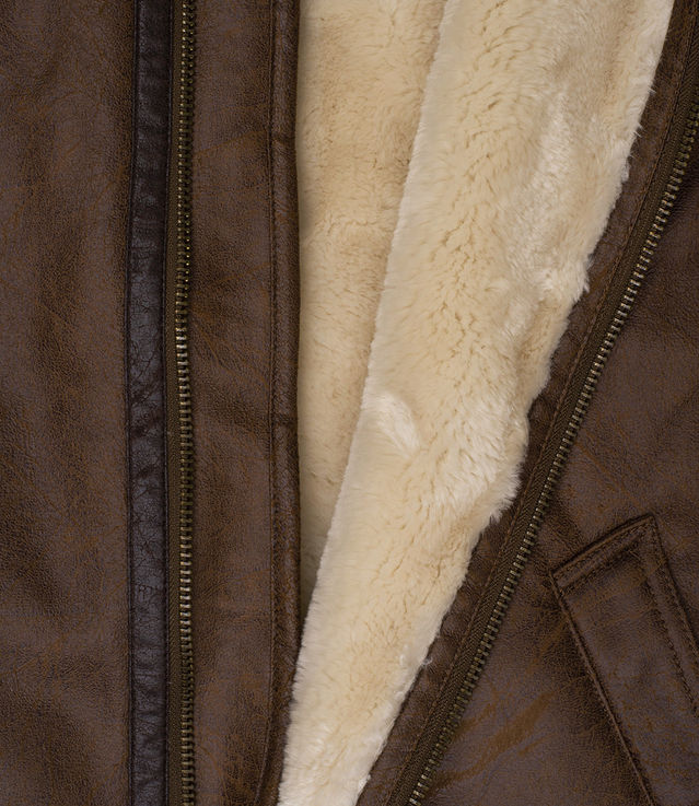 Comfort rating: -10/-20°C. A comfort rating is a temperature range for which this jacket would protect youSherpa lining Faux leather binding detail on seams Stand up collar Buckle adjustment straps on collar and hem Center front zipper Two exterior welt pocketsShell: 100% polyesterLining: 100% polyesterWe recommend to purchase your regular size.