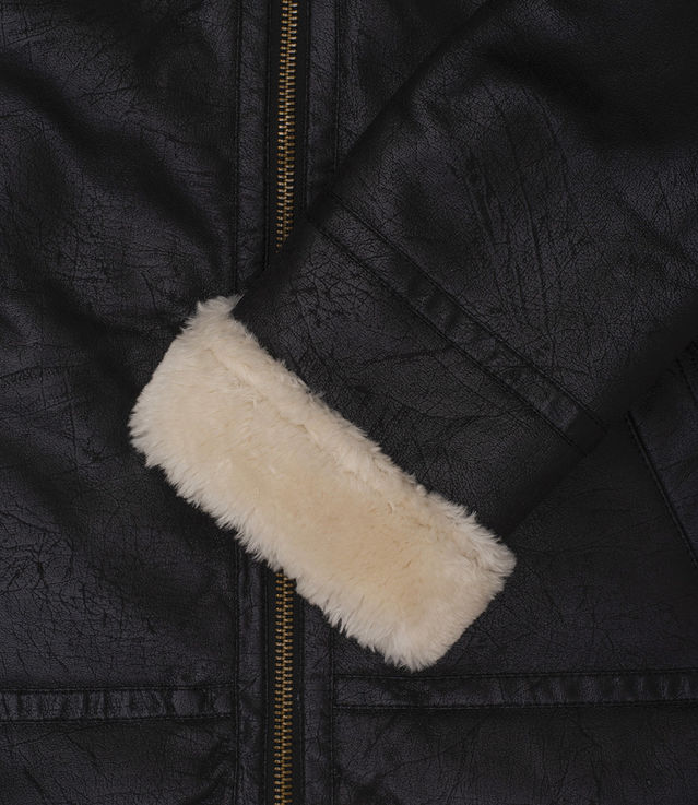 Comfort rating: -10/-20°C. A comfort rating is a temperature range for which this jacket would protect youSherpa lining Faux leather binding detail on seams Stand up collar Buckle adjustment straps on collar and hem Center front zipper Two exterior welt pocketsShell: 100% polyesterLining: 100% polyesterWe recommend to purchase your regular size.